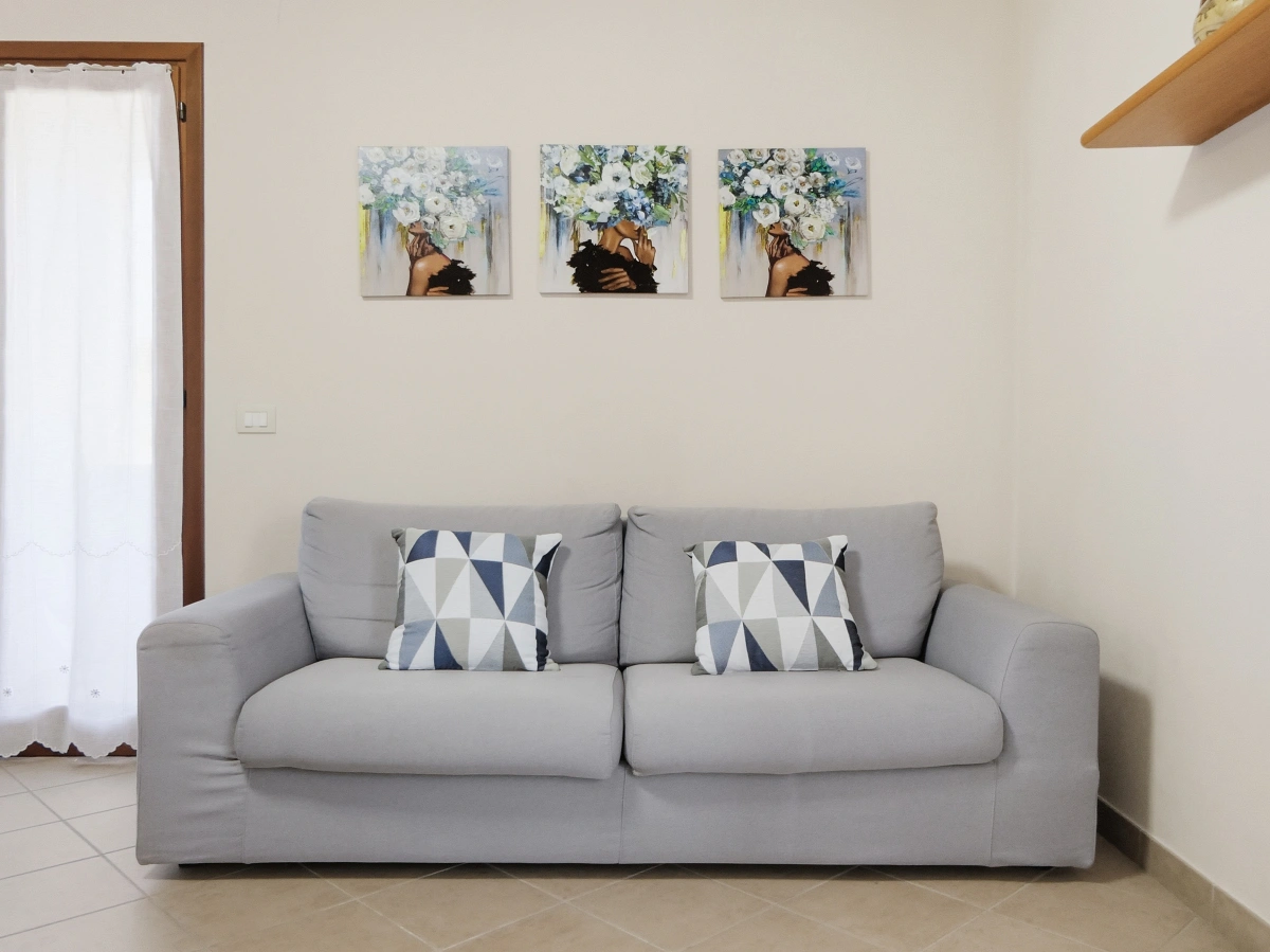 The living area is the heart of the flat, with modern and bright furnishings: